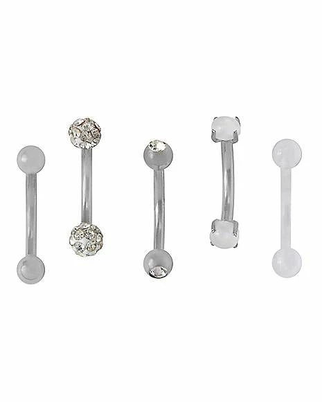 Buy π₯° Multi-Pack CZ Silvertone and White Curved Barbells 5 Pack – 16 Gauge βοΈ
