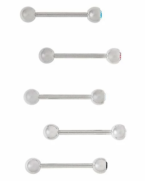 Best reviews of ❤️ Multi-Pack CZ Silvertone Barbells 5 Pack – 14 Gauge 😀