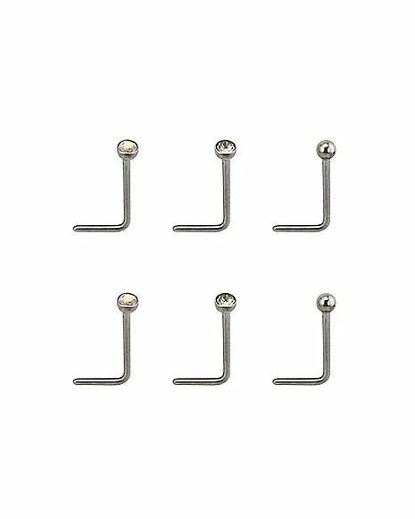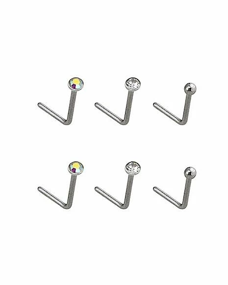 Flash Sale βοΈ Multi-Pack Silvertone CZ L-Bend Stud Nose Rings 6 Pack – 20 Gauge π
