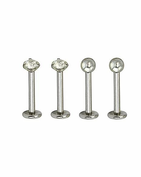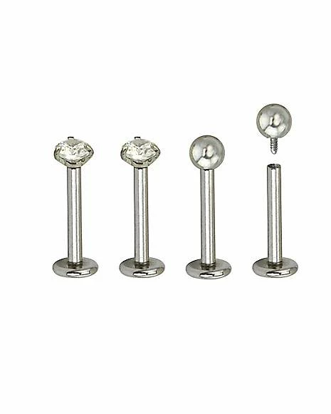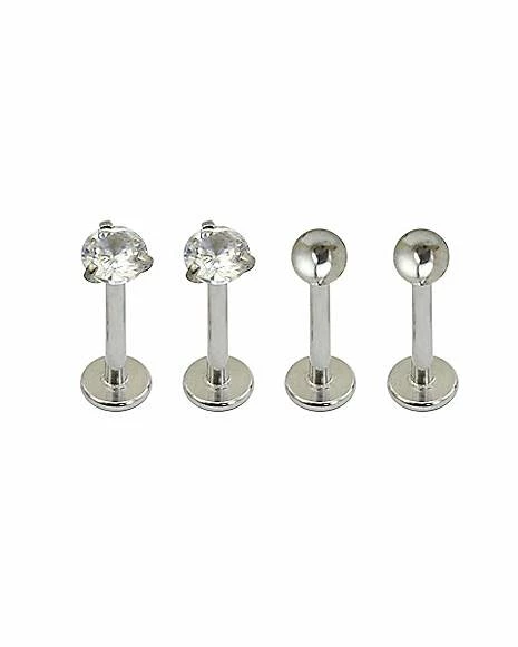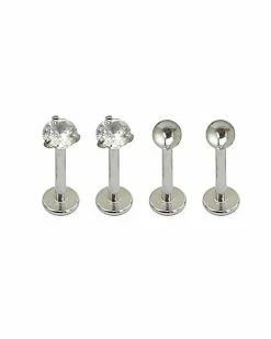 Hot Sale β Multi-Pack CZ Silvertone Labret Lip Rings 4 Pack – 16 Gauge π