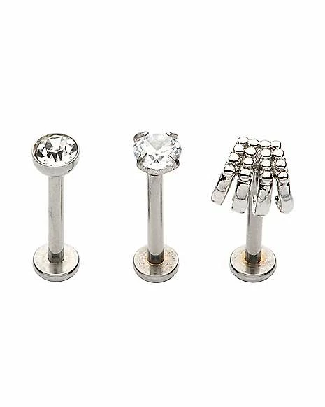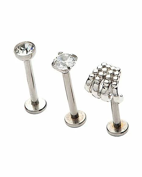 Promo β¨ Multi-Pack CZ Silvertone Round and Cuff Cartilage Earrings 3 Pack – 18 Gauge π