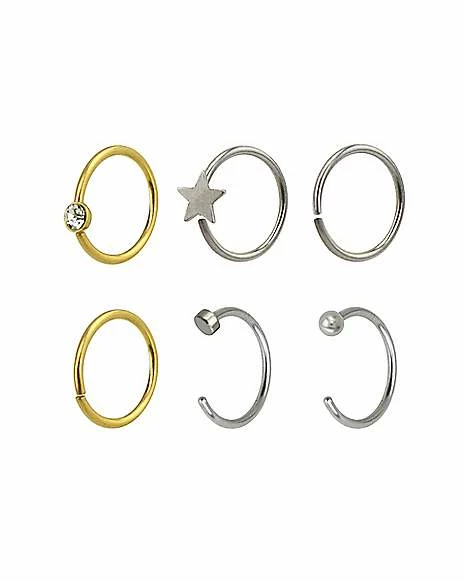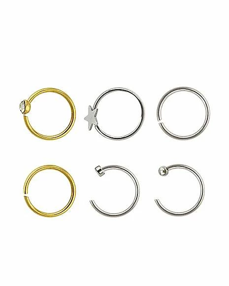 Best Sale βοΈ Multi-Pack CZ Star Hoop Nose Rings 6 Pack – 20 Gauge π