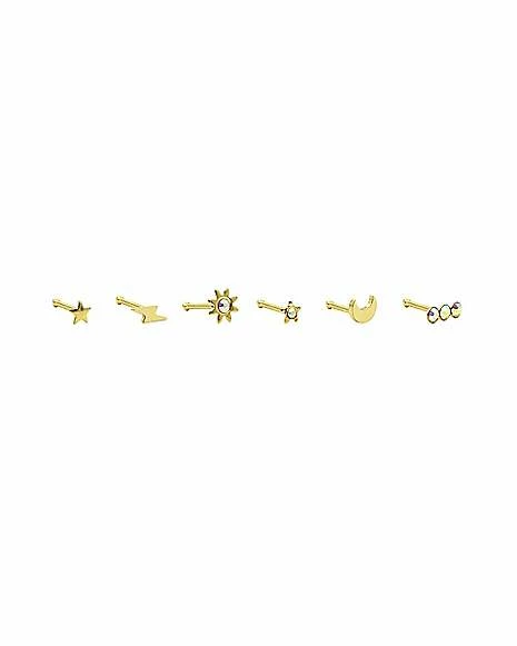 Buy β Multi-Pack CZ Sun Moon and Star Bone Nose Rings 6 Pack – 20 Gauge π