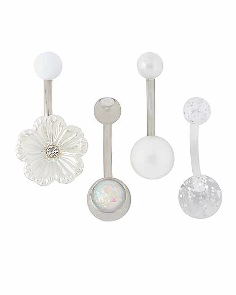 Cheapest β Multi-Pack CZ White Flower Pearl Belly Rings 4 Pack – 14 Gauge π