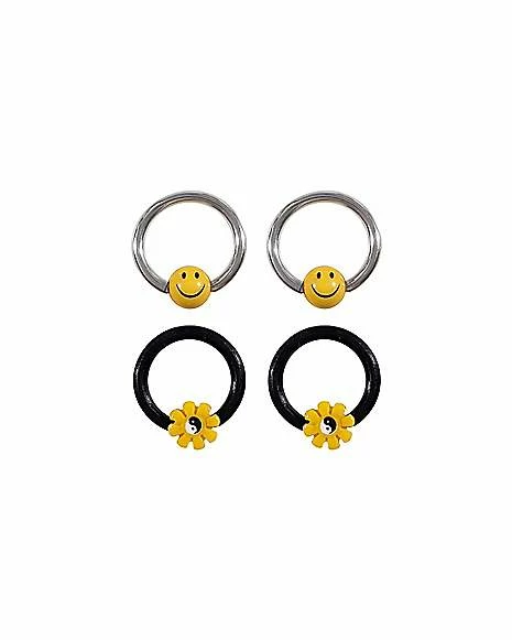 Buy π Multi-Pack Daisy and Smiley Face Captive Rings 4 Pack -16 Gauge π₯