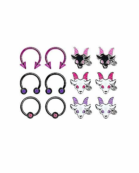 Cheap π Multi Pack Demon Goat Captive Horseshoe and Stud Earrings 6 Pack – 18 Gauge π