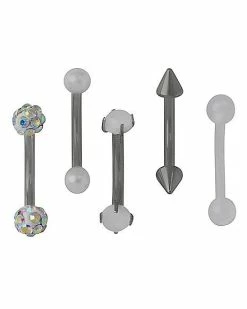Discount 🥰 Multi-Pack Faux Opal Spike Barbells 5 Pack – 16 Gauge 🤩