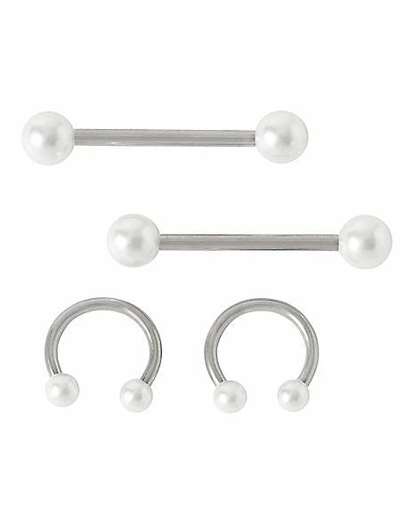 Outlet π― Multi-Pack Faux Pearl Titanium Horseshoe Rings and Barbells 2 Pair – 14 Gauge π