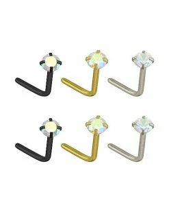 Flash Sale βοΈ Multi-Pack Silvertone CZ L-Bend Stud Nose Rings 6 Pack – 20 Gauge π