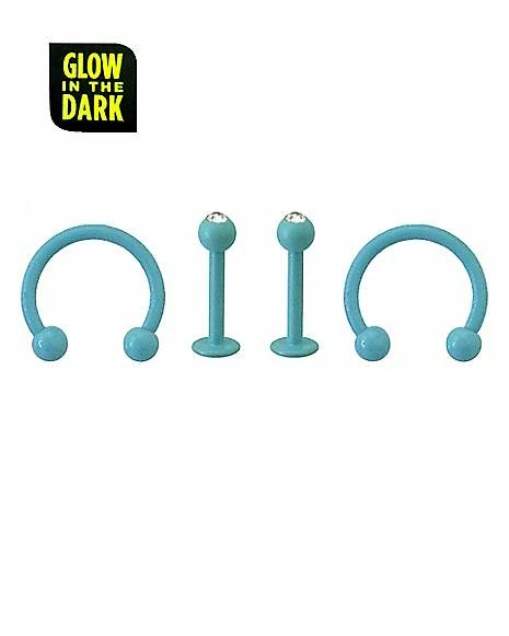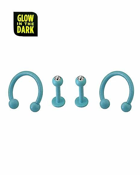 Buy π₯ Multi-Pack Glow In The Dark CZ Light Blue Horseshoe Rings and Labret Rings 4 Pack – 16 Gauge π€©