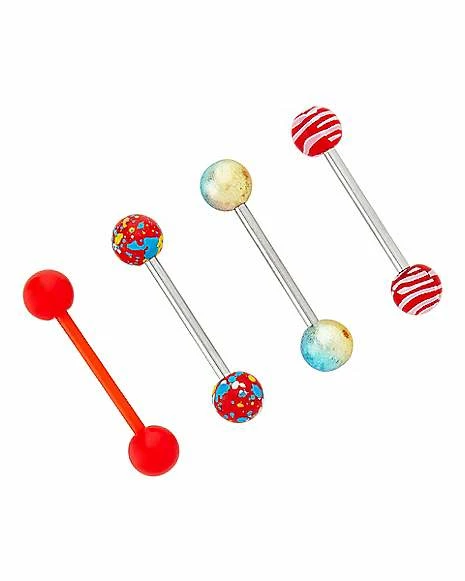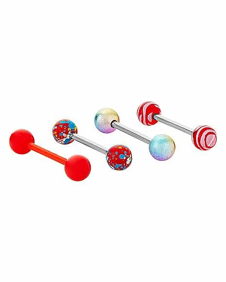 Best reviews of π― Multi-Pack Glow in the Dark Red Swirl and Splatter Barbells 4 Pack – 14 Gauge π