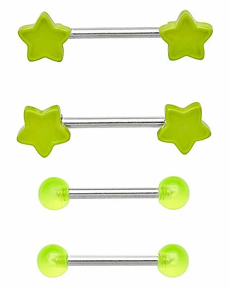Promo β¨ Multi-Pack Glow In The Dark Star Nipple Barbells 2 Pair – 14 Gauge π