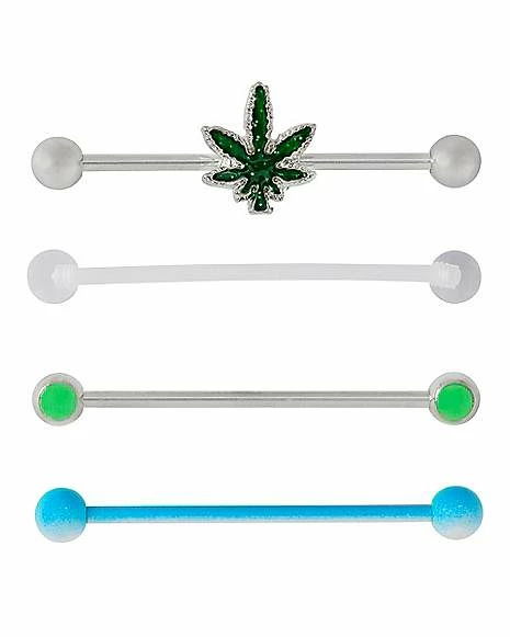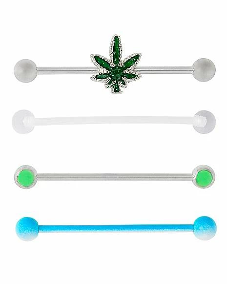 Cheapest π Multi-Pack Glow in the Dark Weed Leaf Industrial Barbells 4 Pack – 14 Gauge π