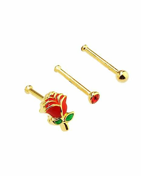 Best Sale π Multi-Pack Goldplated Rose Bone Nose Rings 3 Pack – 20 Gauge π₯