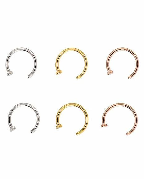 Budget ✔️ Multi-Pack Goldtone and Rose Goldtone Half Hoop Nose Rings 6 Pack – 18 Gauge ❤️