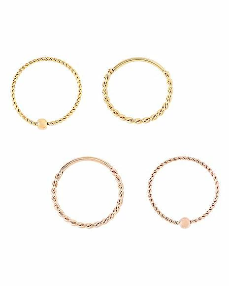 Brand new π Multi-Pack Goldtone and Rose Goldtone Twist Seamless Hoop Nose Rings 4 Pack – 20 Gauge π