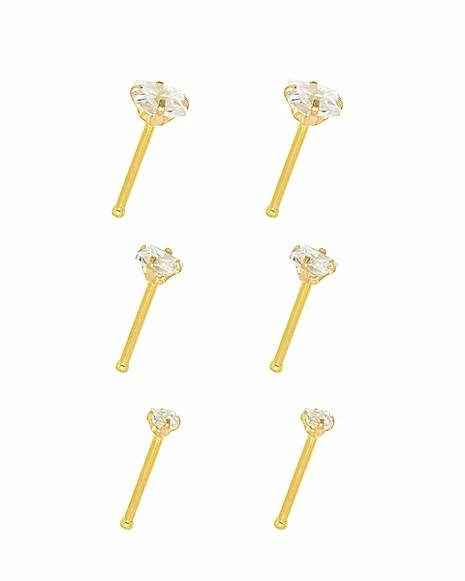 Best deal π Multi-Pack Goldtone CZ Bone Nose Rings 6 Pack – 20 Gauge π