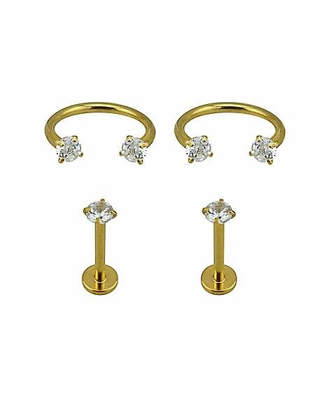 Cheapest 𧨠Multi-Pack Goldplated CZ Horseshoe Ring and Barbells 4 Pack – 16 Gauge β¨