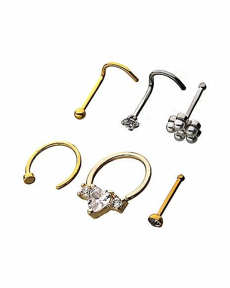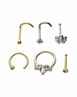 Cheap π Multi-Pack Goldtone CZ Nose Rings 6 Pack – 20 Gauge π€©