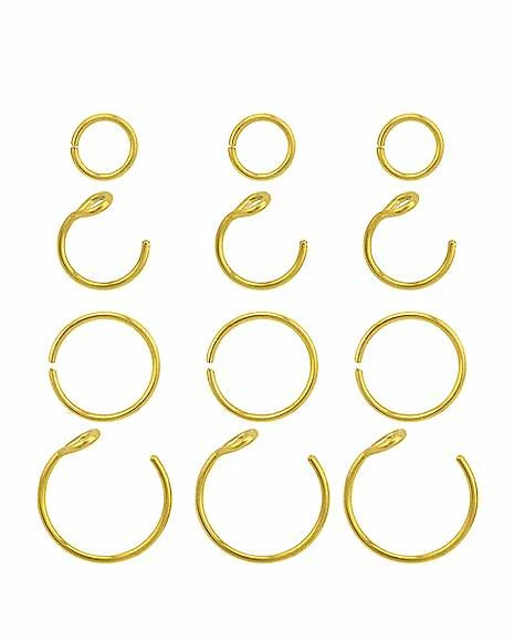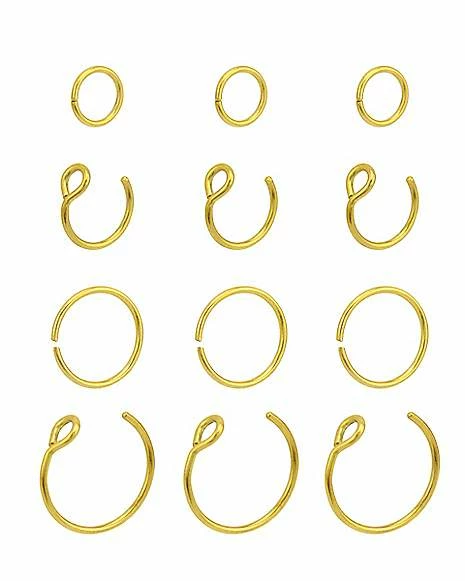 Promo βοΈ Multi-Pack Goldtone Hoop Nose Rings and Fake Hoop Nose Rings 12 Pack – 20 Gauge π₯