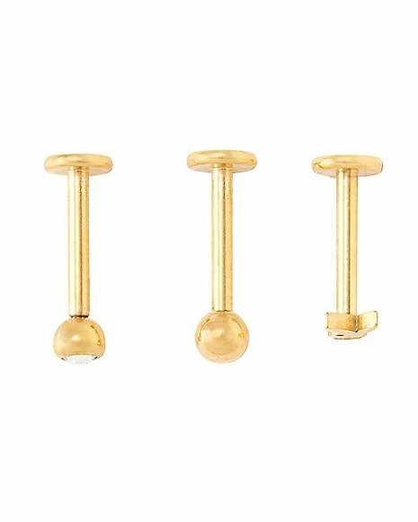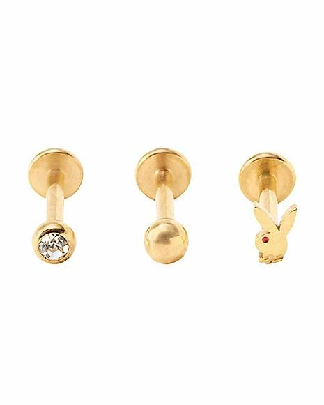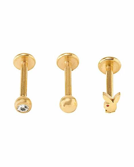 Budget βοΈ Multi-Pack Goldtone Playboy Bunny Labret Lip Rings 3 Pack – 16 Gauge π
