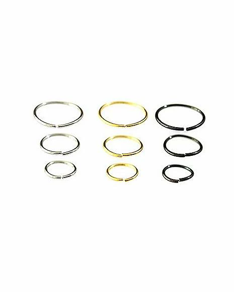 Outlet π Multi-Pack Goldtone Silvertone Black Hoop Nose Rings 9 Pack – 20 Gauge π§¨