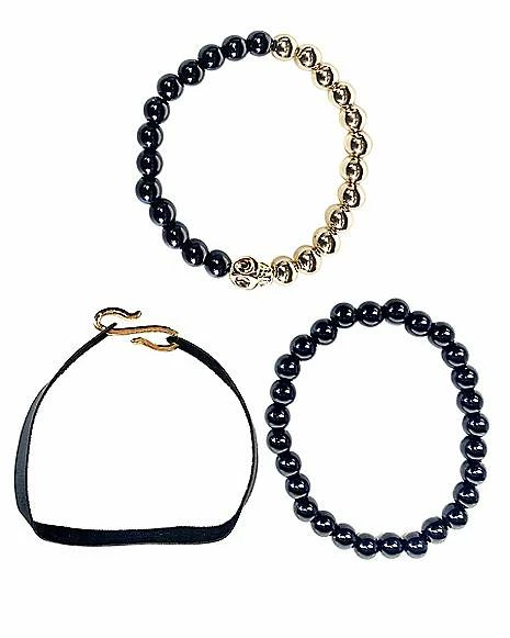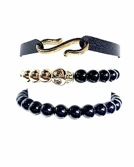 Buy π Multi-Pack Goldtone Skull Black Beaded Bracelets – 3 Pack β