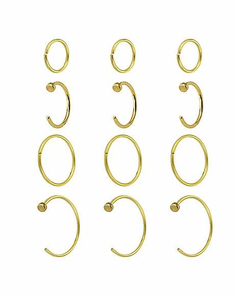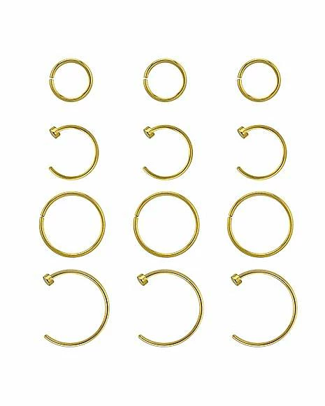 Flash Sale π Multi-Pack Goldtone Titanium Hoop Nose Rings and Half Hoop Nose Rings 12 Pack – 20 Gauge π
