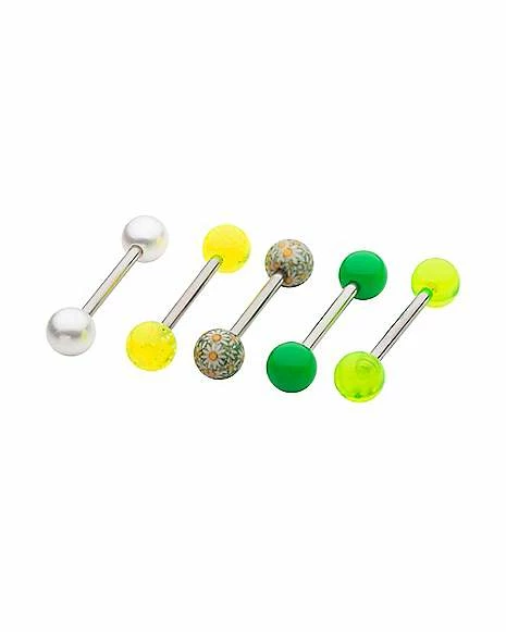 Best Pirce π Multi-Pack Green and Yellow Flower Barbells 5 Pack – 14 Gauge π
