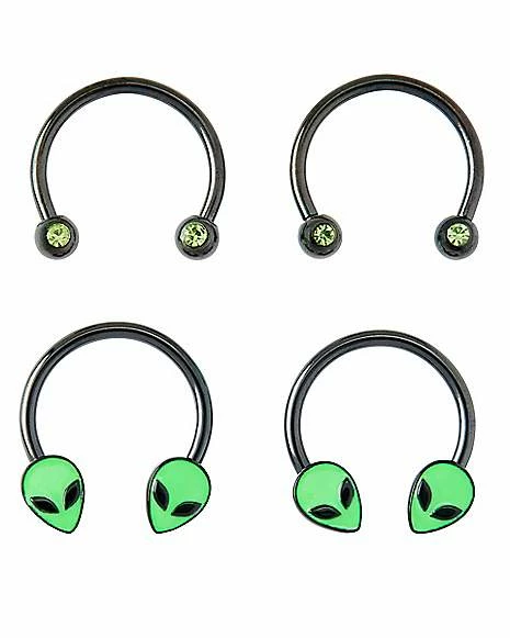 Be the first to review “Promo π Multi-Pack Green CZ Alien Horseshoe Rings 2 Pair – 16 Gauge π” Cancel reply