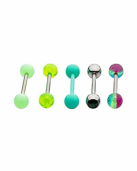 Best reviews of π Multi-Pack Green Teal Silver Barbells 5 Pack – 14 Gauge π―