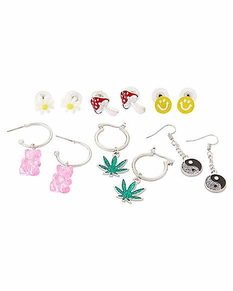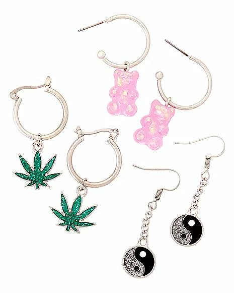 Coupon π Multi-Pack Gummy Bear Weed Leaf Yin Yang Smiley Face Earrings – 6 Pair βοΈ