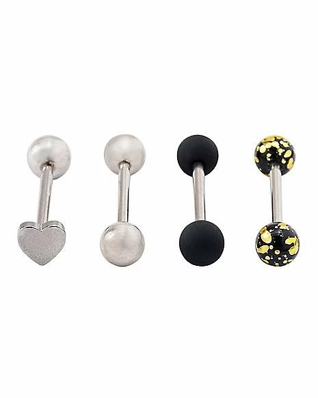 Outlet π Multi-Pack Heart and Splatter Barbells 4 Pack – 14 Gauge π
