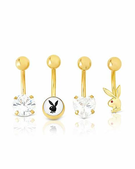 Coupon β€οΈ Multi-Pack Heart CZ Goldplated Playboy Belly Rings 4 Pack – 14 Gauge π₯