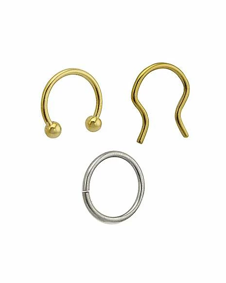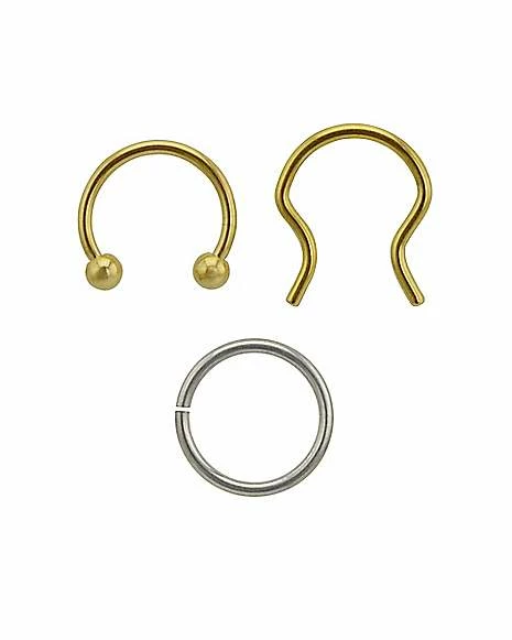 Best Pirce ❤️ Multi-Pack Hoop and Horseshoe Nose Rings 3 Pack – 16 Gauge 🥰