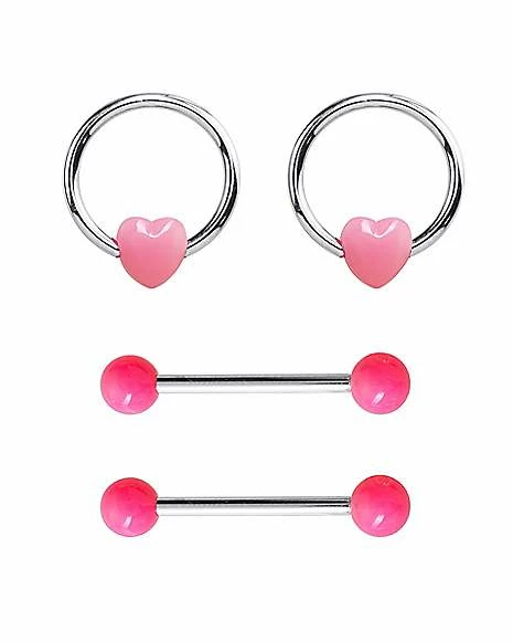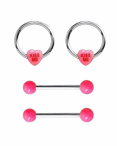 Hot Sale π Multi-Pack Kiss Me Nipple Rings and Nipple Barbells 2 Pair – 14 Gauge π