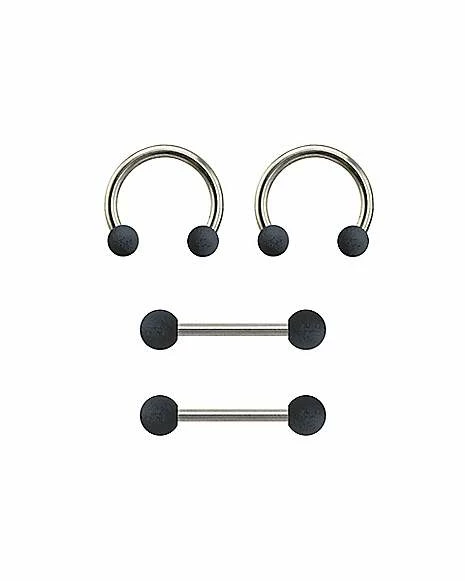 Cheap π Multi-Pack Matte Black and Gray Horseshoe Rings and Nipple Barbells 2 Pair – 14 Gauge π€©