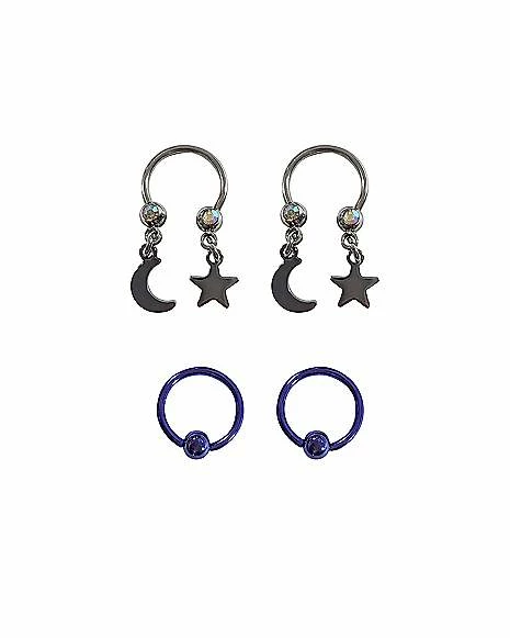 Deals ⌛ Multi-Pack Moon and Star Horseshoe and Captive Rings 4 Pack – 16 Gauge ✨