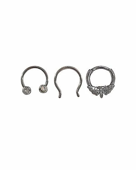 Outlet π Multi-Pack Moth CZ Hinge Septum and Horseshoe Rings 3 Pack – 16 Gauge π