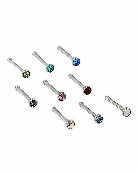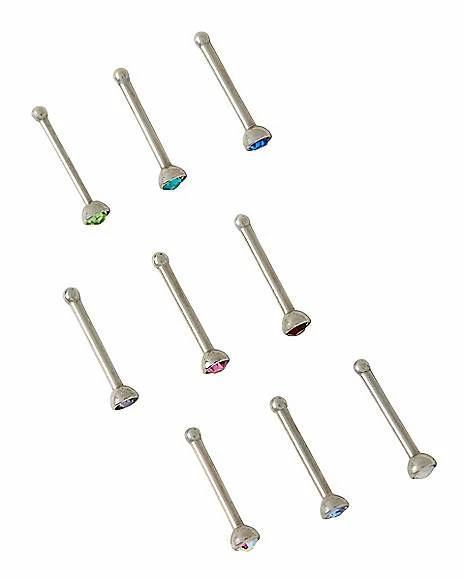 Budget π Multi-Pack Multi-Color CZ Bone Nose Rings 9 Pack – 20 Gauge π₯
