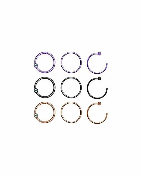 Best Pirce π Multi-Pack Multi-Color Hoop Nose Rings 9 Pack – 20 Gauge βοΈ