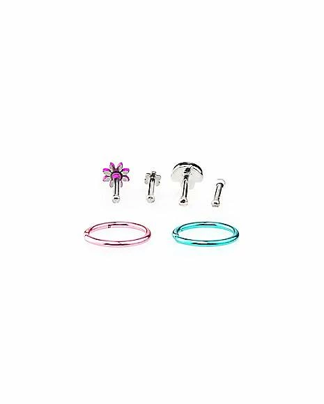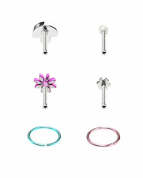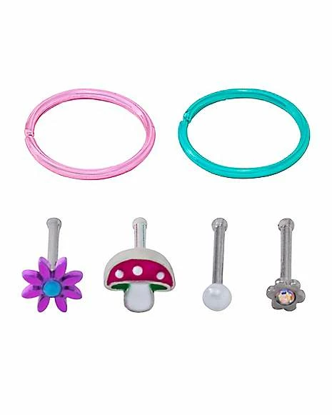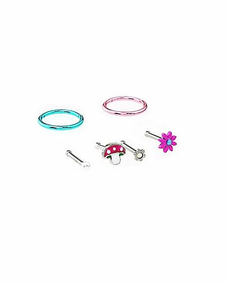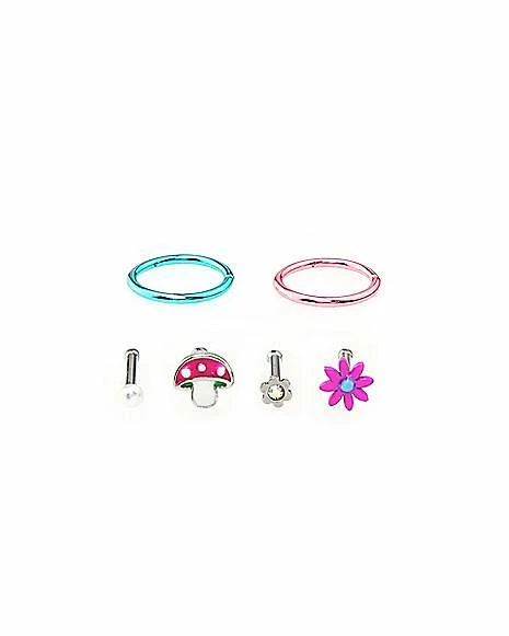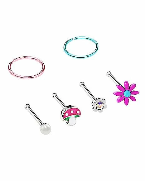 Best deal 🥰 Multi-Pack Mushroom Flower Assorted Nose Pins 6 Pack – 20 Gauge 🤩