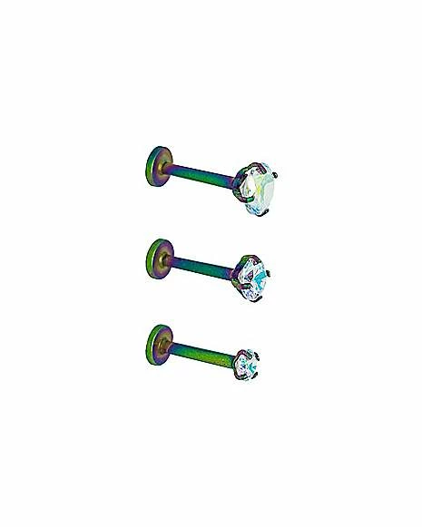 Cheap π Multi-Pack Oil Slick CZ Labret Lip Rings 3 Pack – 16 Gauge π