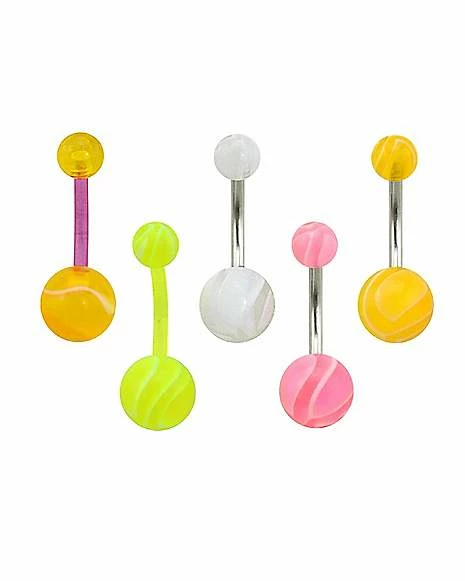 Best Sale 𧨠Multi-Pack Orange and Pink White Swirl Effect Banana Belly Rings 5 Pack – 14 Gauge π§¨