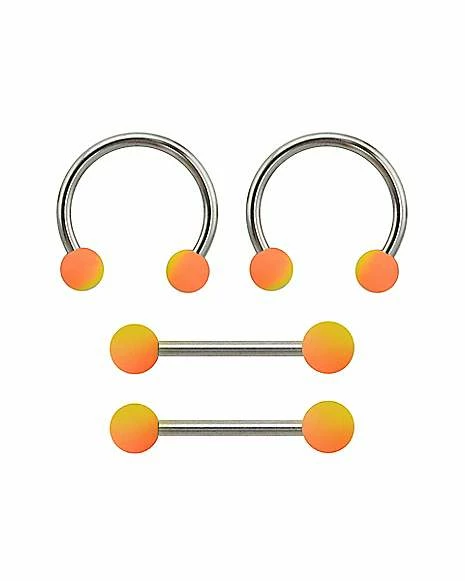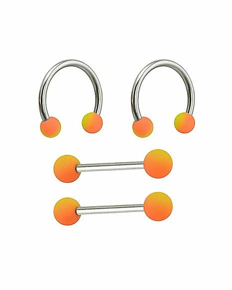 Outlet π Multi-Pack Orange Ombre Horseshoe Rings and Nipple Barbells 2 Pair – 14 Gauge π