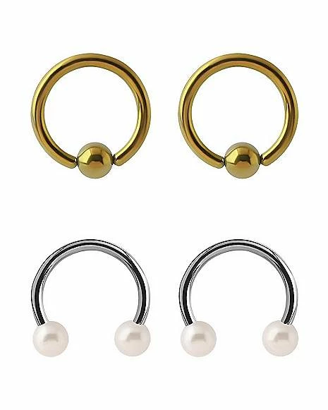 Budget ✨ Multi-Pack Pearl-Effect Horseshoe Rings and Goldtone Captive Rings 4 Pack – 16 Gauge ✨