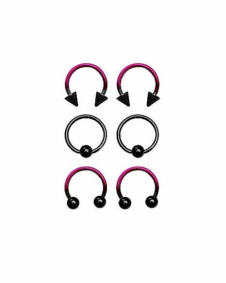 Promo π₯° Multi-Pack Pink and Black Ombre Horseshoe Rings and Captive Rings 3 Pair – 16 Gauge π