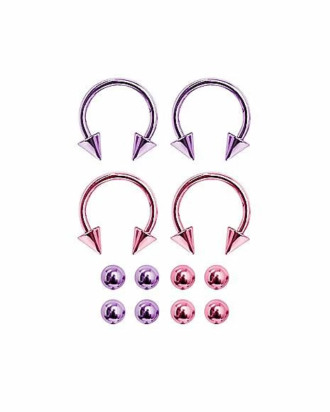 Budget π Multi-Pack Pink and Purple Horseshoe Rings 2 Pair With Extra Balls β 16 Gauge π₯