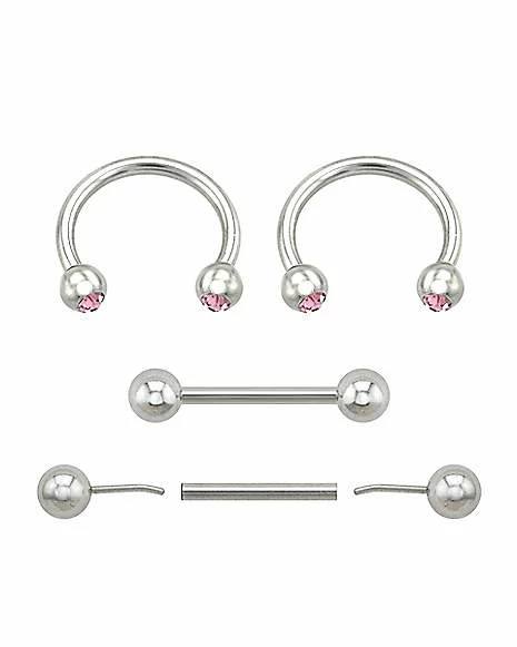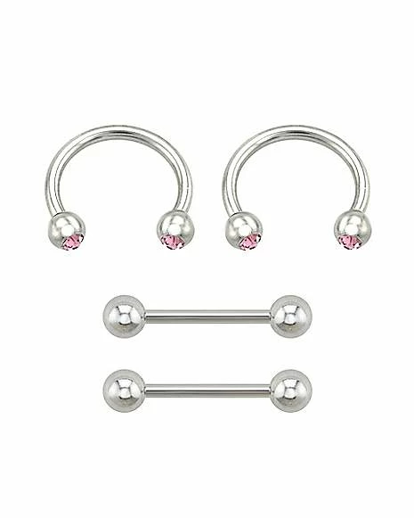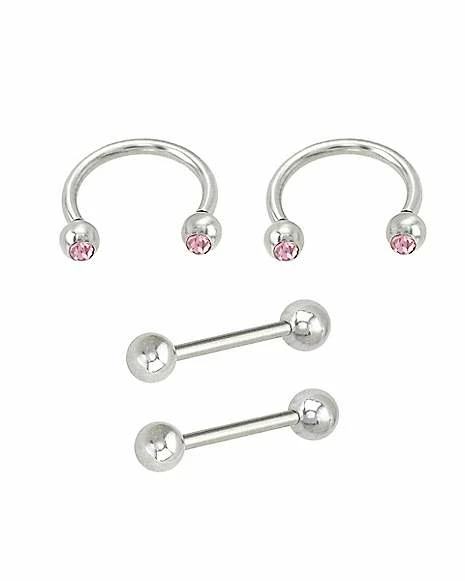 Discount π Multi-Pack Pink CZ Internally Threaded Horseshoe Rings and Nipple Barbells 2 Pair – 14 Gauge π₯