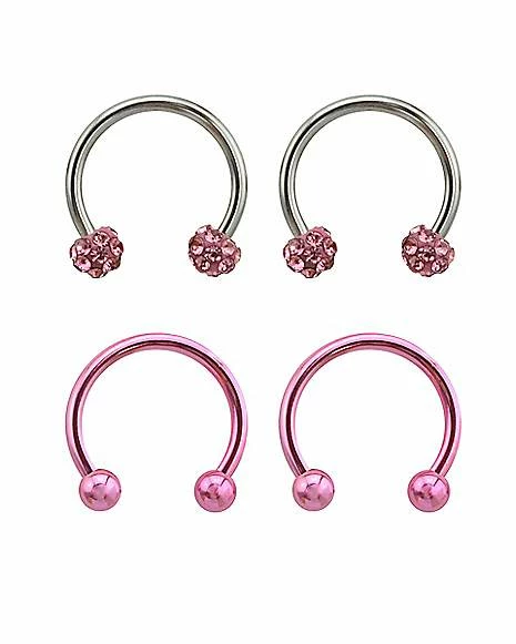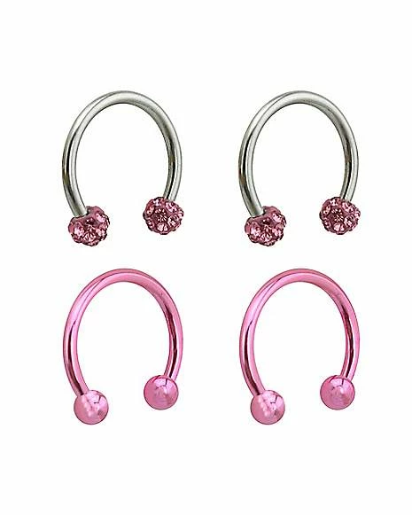 Best Pirce π€© Multi-Pack Pink Pave Horseshoe Rings 2 Pair – 16 Gauge π